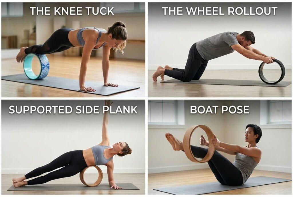 The yoga wheel turns a regular ab workout into a fun challenge. Since the wheel moves, your body has to work overtime to stay steady. This helps you find those deep muscles that regular sit-ups often miss.